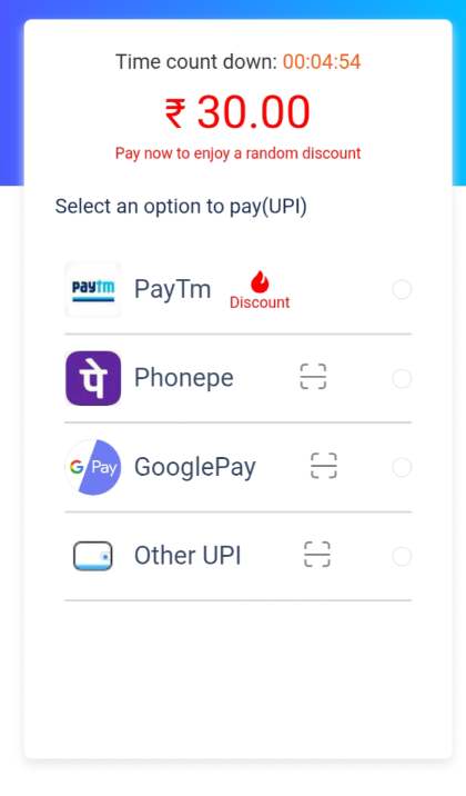 Select Payment Method: You will usually be presented with options such as UPI (GPay, PhonePe, Paytm,Other UPI Pay), credit/debit cards, or net banking.