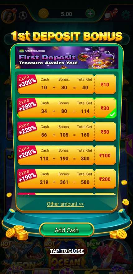 Club INR APK brings you an instant real cash bonus. Now, it is your turn to earn lakhs! So, why wait? Click the download button right now to get the app and receive a “Shining Bonus” as well. By playing games on this platform, Club INR, you can acquire anything you desire—from cars to bungalows. Simply put, with this application, you will be able to fulfill all your dreams. So, why wait? Click the download button right now to download the app, start playing, and claim a ₹555 bonus!