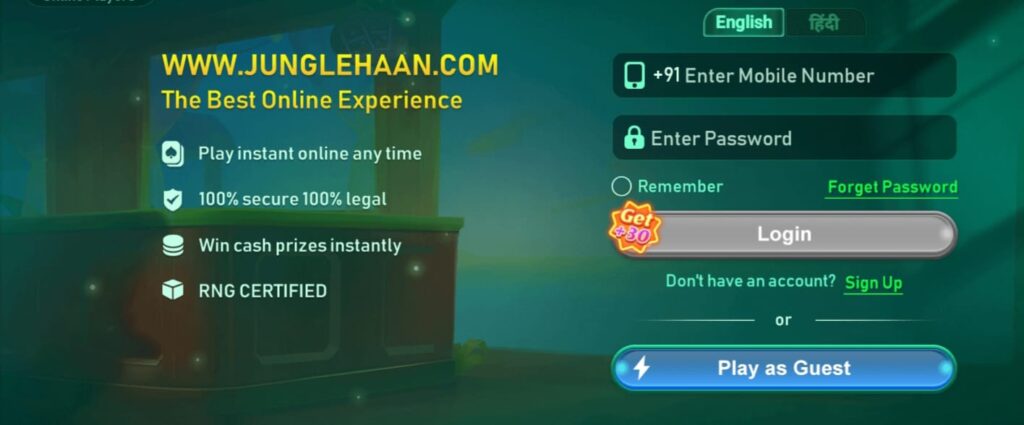 Most versions of Jungle Haan offer a small sign-up bonus (e.g., ₹10 to ₹50) once your mobile number is successfully bound. Check your in-app mailbox or balance immediately after registering.